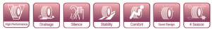 Banda de rodamiento en línea recta semi dual- Ayuda la estabilidad direccional de conducción a altas velocidades y permite una excelente respuesta de dirección