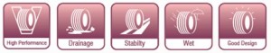 Superficie de contacto direccional en forma de V- Mejora el drenaje y la protección contra el aquaplanning